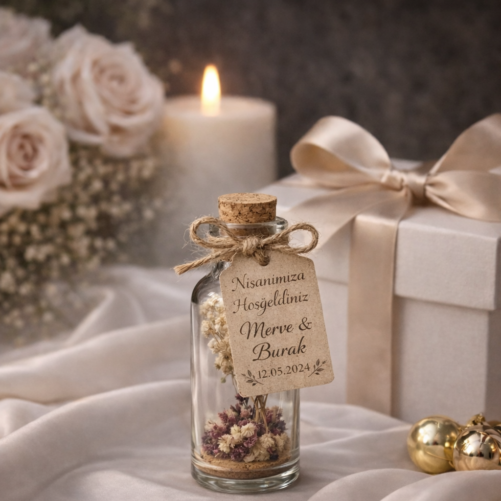 Minimal tarzı sevenler için ideal olan bu parça, söz, nişan ve özel günlerde misafirlere zarif ve kalıcı bir anı bırakmak isteyenler için tasarlanmıştır.